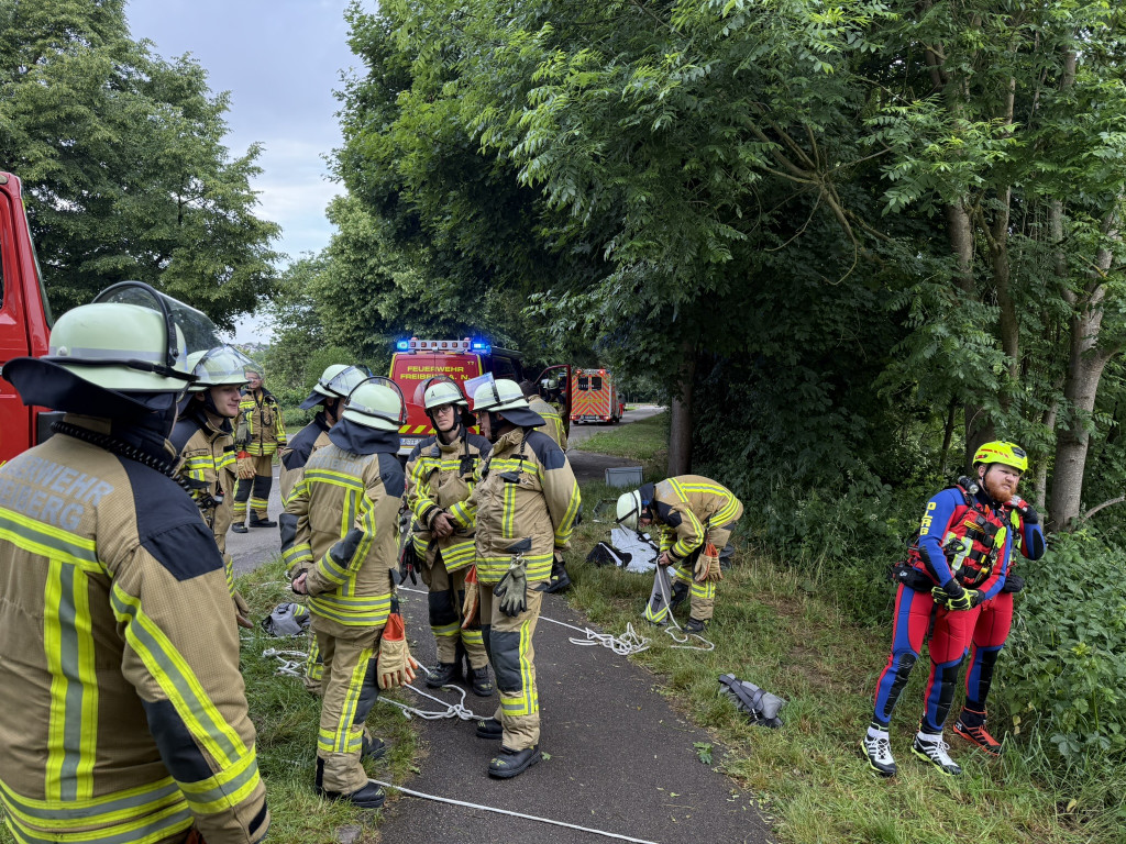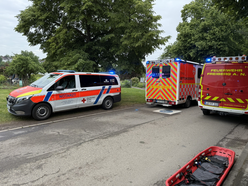 Am 29. Mai 2025 wurde der Integrierten Leitstelle in Ludwigsburg (ILS) um 6:37 Uhr ein PKW im Neckar gemeldet. Darauf wurde gemäß der Alarm- und Ausrückeordnung die Große Schleife der Feuerwehr Freiberg, sowie die Bootsschleifen der Feuerwehren Benningen und Pleidelsheim, sowie die DLRG alarmiert. Die Einsatzkräfte fanden dann an der Talstraße im Bereich der Kleingartenanlage einen PKW im Altneckar vor. Zunächst stiegen Einsatzkräfte der Feuerwehr über die Steckleiter die Böschung hinab und kontrollierten das Fahrzeug auf möglicherweise eingeschlossene Personen. Dies war allerdings nicht der Fall, deshalb wurde der Personaleinsatz reduziert und die Feuerwehr Freiberg blieb mit ELW 1 und LF 16/12, sowie die Feuerwehr Benningen mit HLF 20/16 und KdoW vor Ort. Es wurde ein Abschleppunternehmen verständigt und da zur Fahrzeugbergung auch ein Mobilkran erforderlich war verblieben Feuerwehr und DLRG bis zu Bergung des Fahrzeuges auch aus Umweltschutzgründen vor Ort. Nach erfolgter Fahrzeugbergung konnte der Einsatz dann auch für Kräfte von Feuerwehr und DLRG beendet werden.