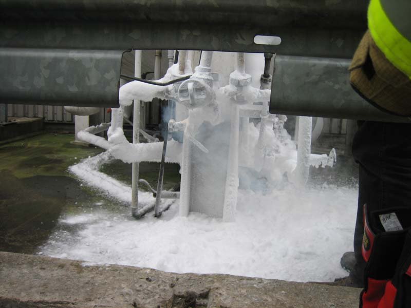 Auf Grund einer nicht richtig verschlossenen Befülleinrichtung eines Stickstofftanks wurde die Feuerwehr Freiberg am Neckar zu einer Firma in die Harteneckstraße alarmiert.