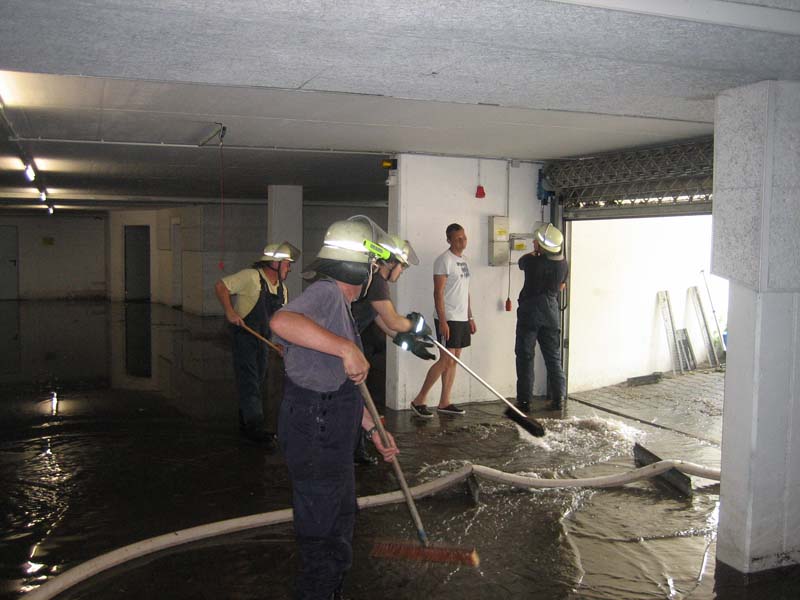 Diesmal mussten die Feuerwehrleute vornehmlich im Ortsteil Geisingen ihr Können unter Beweis stellen. Man traf Wasser in Kellern oder Gebäuden vor, Bäume waren umgestürzt.