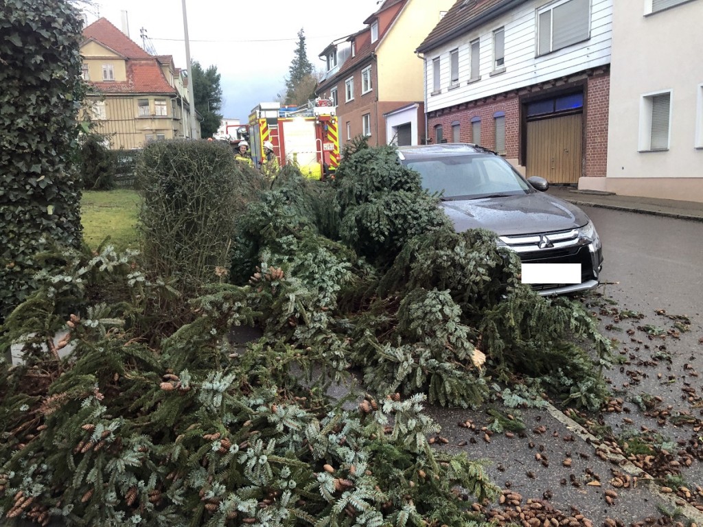 Durch die Auswirkungen von Sturm „Sabine“ war die Feuerwehr Freiberg am 10.02.2020 zu mehreren Einsätzen ausgerückt. Um 8:00 Uhr gab es den sechsten Einsatz für die Feuerwehr. An der Ecke Bietigheimer Straße / Nelkenweg war ein Baum umgestürzt und auf einen dort abgestellten PKW gefallen. Der Baum wurde von der Feuerwehr zersägt und auf dem dortigen Grundstück gelagert.
