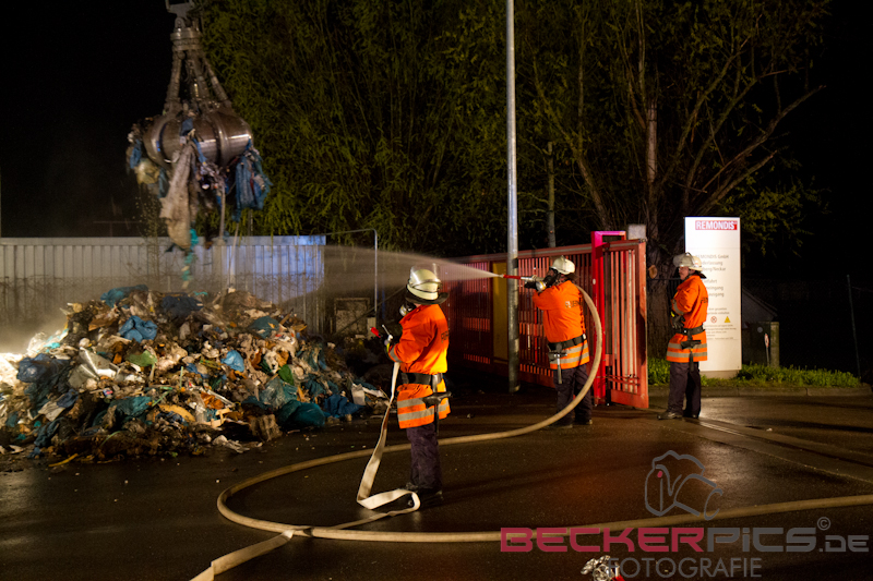 Ein weiteres Entzünden des Gewerbemülls durch Glutnester sollte verhindert werden.
