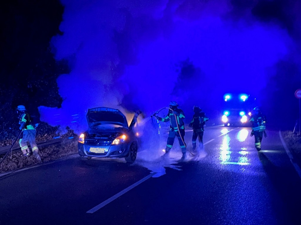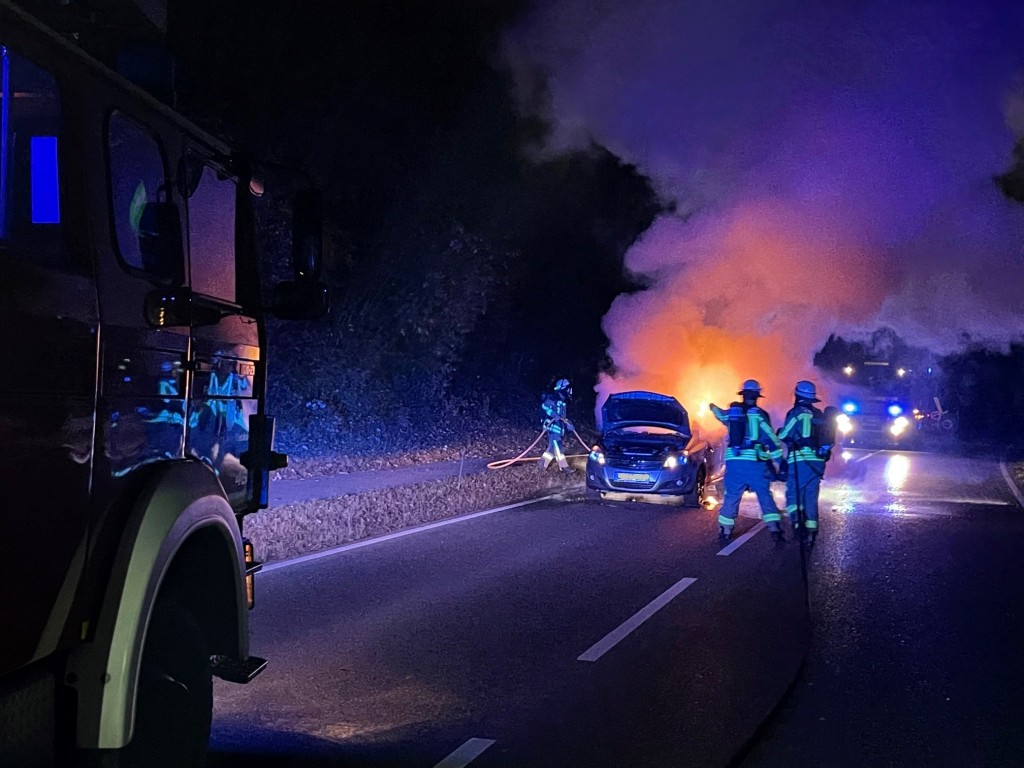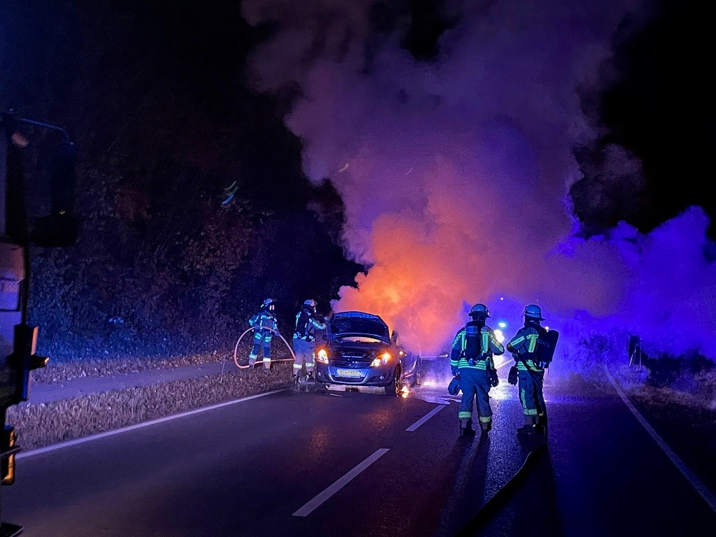 Kurz nach einer Übung wurde die Große Schleife der Feuerwehr Freiberg am 15.11.2021, um 21:49 Uhr zu einem PKW Brand auf der Landesstraße L 1113, zwischen Freiberg und Ingersheim alarmiert. Beim Eintreffen der Einsatzkräfte stand das Fahrzeug bereits im Vollbrand. Ein Trupp unter Atemschutz führte die Löschmaßnahmen mit dem Schnellangriff durch. Zusätzlich wurde die Einsatzstelle ausgeleuchtet und während der Löscharbeiten die Straße abgesperrt. Anschließend wurde die Einsatzstelle der Polizei übergeben.