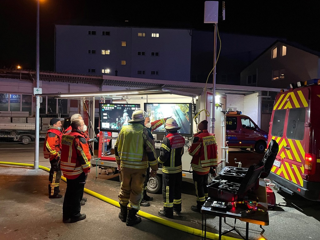 Am 22.12.2021 wurden um 19:18 Uhr die Große Schleife der Feuerwehr Freiberg und die gemeinsame Führungsgruppe Ludwigsburg-Freiberg alarmiert, nachdem Anwohner in der Bahnhofstraße bei der Integrierten Leitstelle in Ludwigsburg (ILS) eine Rauchentwicklung gemeldet hatten. Beim Eintreffen der ersten Einsatzkräfte wurde an einer Halle eines Betriebes in der Dieselstraße der Brand entdeckt. In der Halle brannte es zwischen Becken mit unbekannter Flüssigkeit. Da zunächst eine Reaktion mit dem Löschwasser nicht ausgeschlossen werden konnte, wurden der Außenbereich und die Brandschutztüren kontrolliert. Über die Drehleiter der Feuerwehr Ludwigsburg konnte festgestellt werden dass bereits eine Lichtkuppel auf dem Dach durchgebrannt war. Im weiteren Einsatzverlauf wurde das Fahrzeug der Feuerwehr Remseck mit dem Abrollbehälter Sonderlöschmittel, der GW Mess der Feuerwehr Ludwigsburg, die Fachberater Chemie, sowie die Drohnengruppe der Feuerwehr Walheim nachalarmiert. Desweiteren wurden Wassermeister und Klärmeister verständigt. Nachdem auch der Firmeninhaber eingetroffen war, war schnell klar, dass es sich in den Becken nur um eine organische Substanz handelte und beim Löscheinsatz mit Wasser deshalb keine Gefahr bestand. Im weiteren Verlauf wurden die Löscharbeiten durchgeführt und das Gebäude aus Sicherheitsgründen stromlos geschaltet. Auch die Drohne der Feuerwehr Walheim konnte keine ungewöhnlichen Temperaturen in der Dachkonstruktion feststellen. Nach weiteren umfangreichen Kontrollen mit der Wärmebildkamera konnte die Einsatzstelle wieder dem Eigentümer übergeben werden.