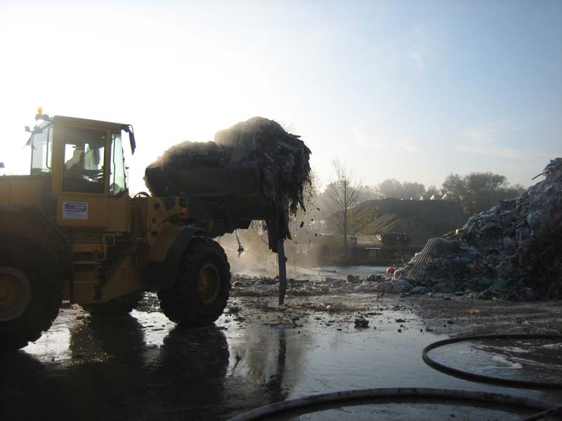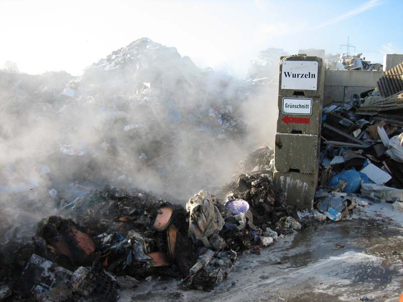 Dort entfachte erneut ein Brand in dem umgelagerten Gewerbemüll. Dieser wurde nochmals mit dem firmeneigenen Radlader auseinander gezogen und umfangreich abgelöscht.