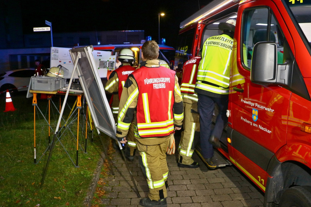 Zu einem Einsatz der Feuerwehr Ludwigsburg in der Mainhardter Straße wurde am 1. Oktober 2024 um 0:28 Uhr auch die Gemeinsame Führungsgruppe Freiberg / Ludwigsburg alarmiert. Bei einem Kellerbrand in einem größeren Mehrfamilienhaus unterstützten die Freiberger Einsatzkräfte die Einsatzleitung der Feuerwehr Ludwigsburg.