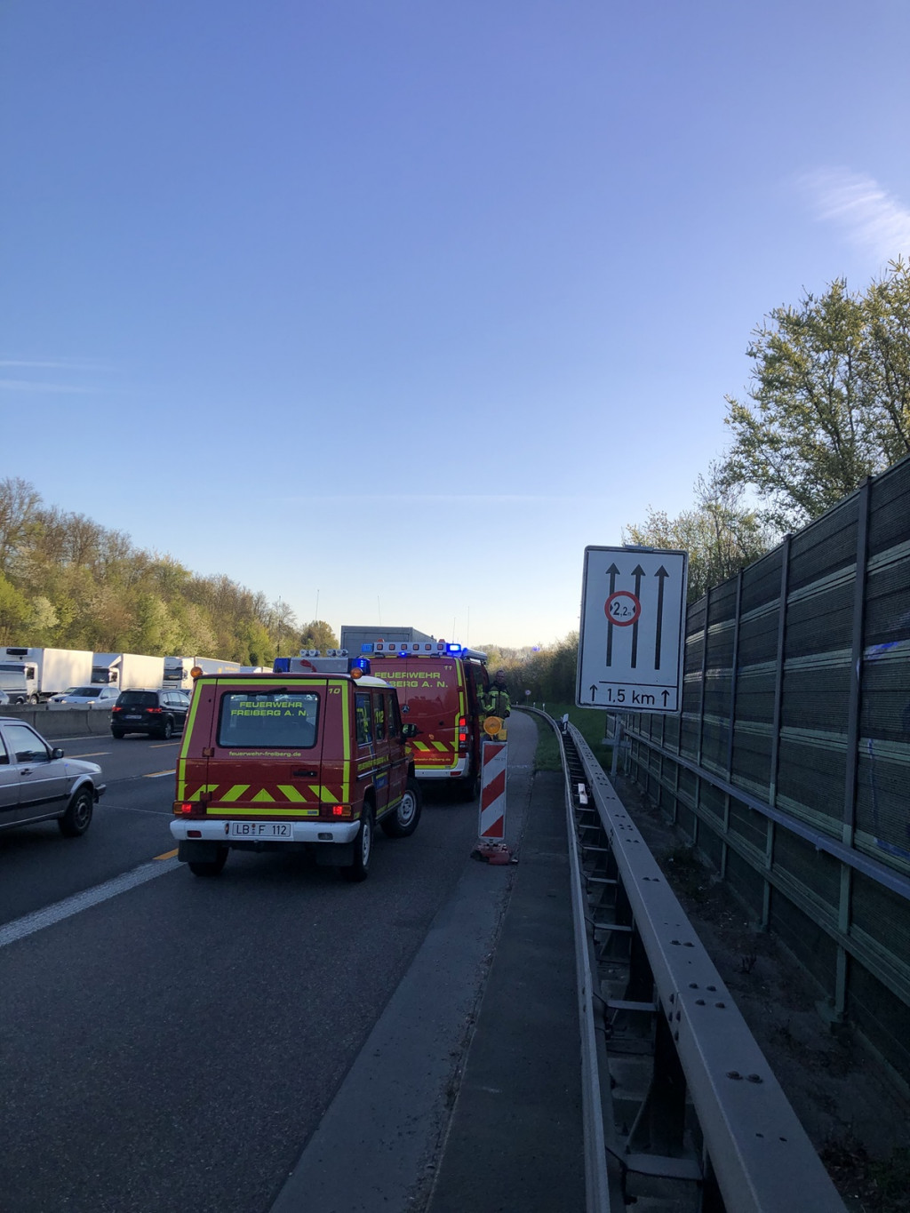Die Große Schleife der Feuerwehr Freiberg und die Feuerwehr Ludwigsburg wurden am 8. April 2025, um 7:29 Uhr zu einem Einsatz auf der Autobahn A 81 alarmiert. Zwischen den Anschlussstellen Ludwigsburg-Nord und Pleidelsheim war von anderen Verkehrsteilnehmern ein LKW mit Rauchentwicklung gemeldet worden. Beim Eintreffen der Feuerwehrwehren an der Einsatzstelle befand sich dort ein LKW mit einer heiß gelaufenen Trommelbremse. Der Reifen wurde von den Einsatzkräften mit der Wärmebildkamera kontrolliert, der Brandschutz wurde mit dem Schnellangriff sichergestellt. Nach Rücksprache mit der Verkehrspolizei wurde der LKW von Polizei und Feuerwehr bis zur Abfahrt Pleidelsheim begleitet. Anschließend wurde die heiß gelaufene Bremse nochmals kontrolliert. Die weiteren Maßnahmen wurden von der Verkehrspolizei übernommen.