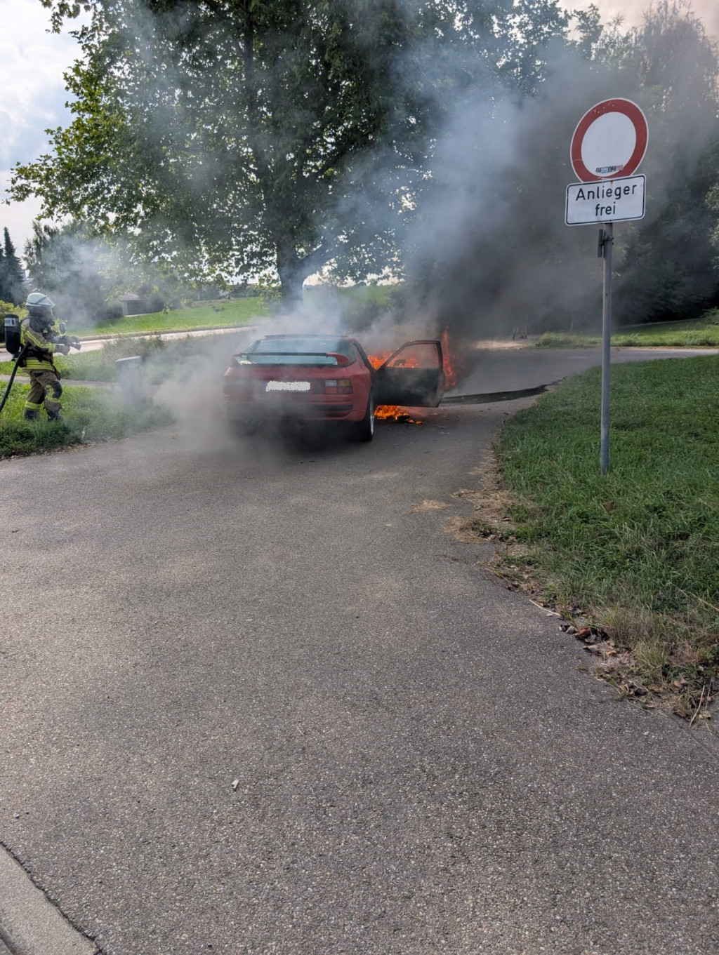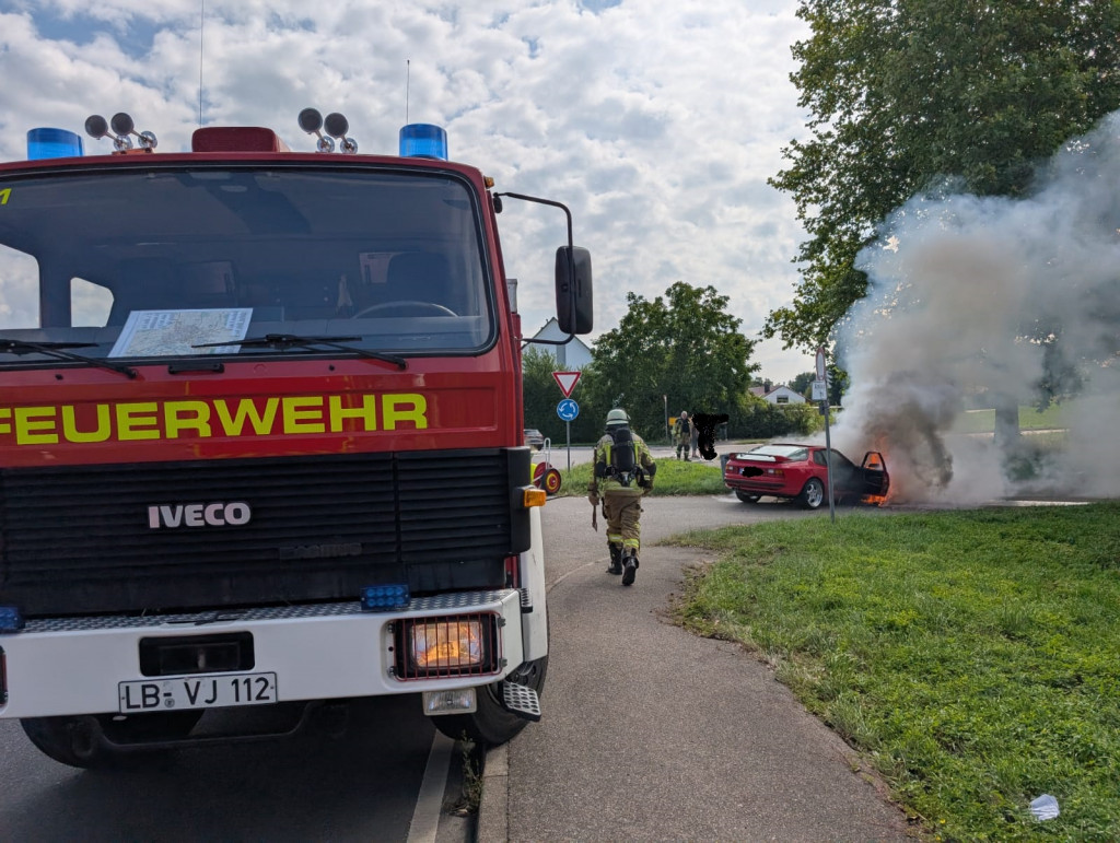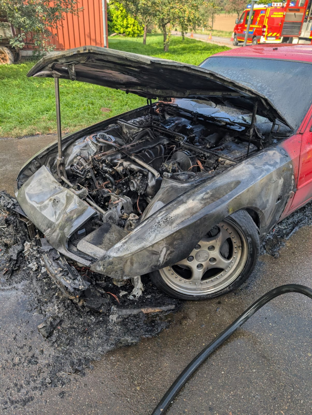 Zu einem PKW Brand wurde die Große Schleife der Feuerwehr Freiberg ebenfalls am 24. August 2025, um 10:48 Uhr alarmiert. Am Kreisverkehr der L 1113 und der K 1600 war es an einem PKW zu einem Brand gekommen. Beim Eintreffen der Feuerwehr brannte der Motorraum bereits in voller Ausdehnung. Ein Trupp unter Atemschutz löschte den Brand mit dem Schnellangriff ab. Nachdem der Abschleppunternehmer das Fahrzeug aufgeladen hatte und die Einsatzkräfte der Feuerwehr die Fahrbahn weiter reinigten wurde festgestellt, dass der Fahrbahnbelag durch das Feuer ebenfalls beschädigt wurde. Der betroffene Bereich wurde von der Feuerwehr abgesperrt und die Polizei darüber informiert.