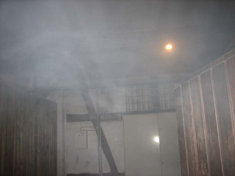 Nachdem das Feuer abgelöscht war, belüftete die Feuerwehr mit einem Überdrucklüfter den Keller um diesen Rauchfrei zu bekommen.