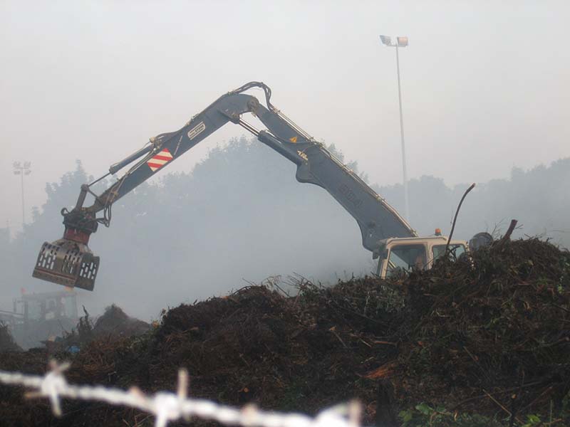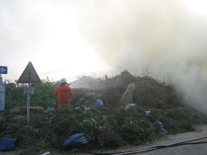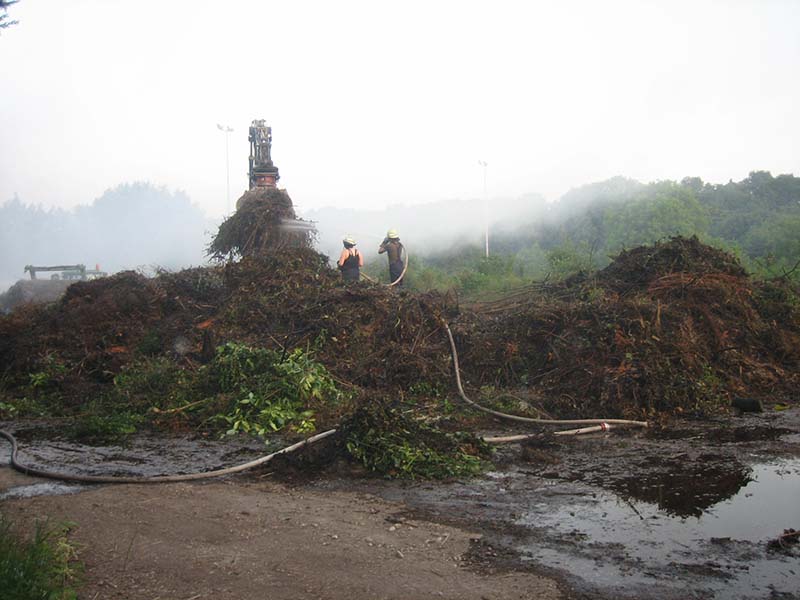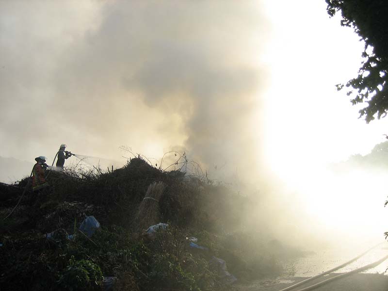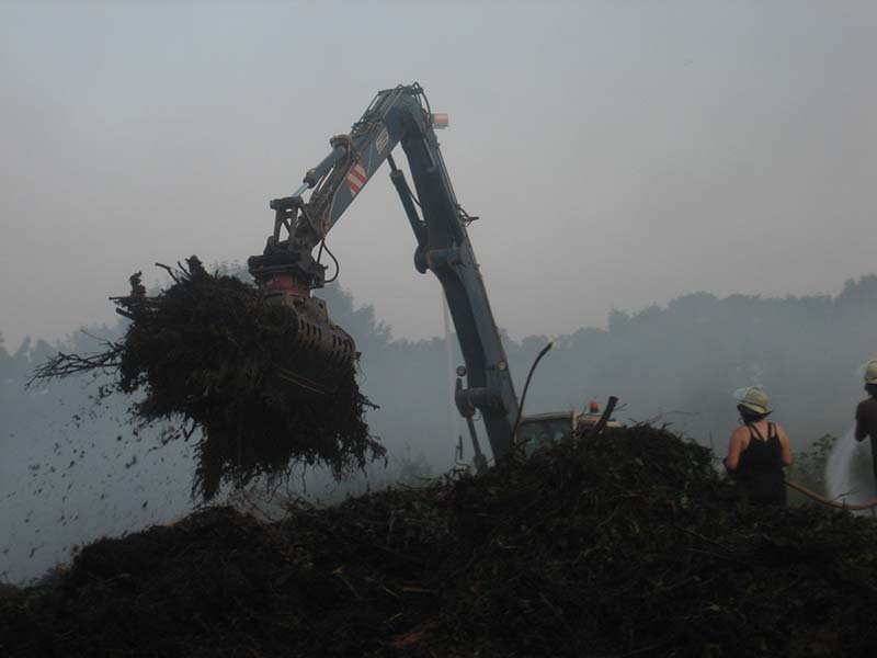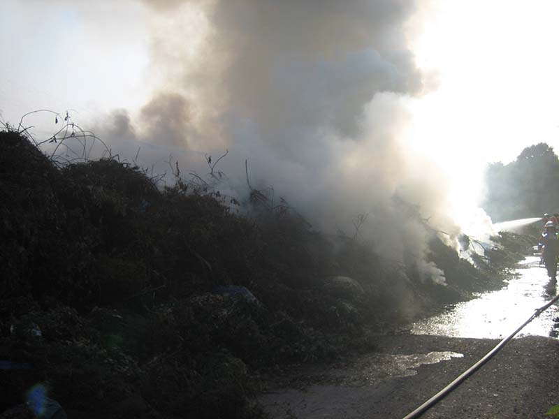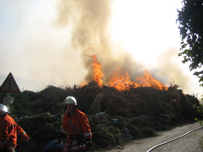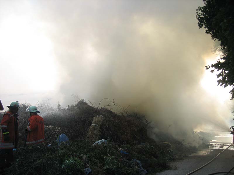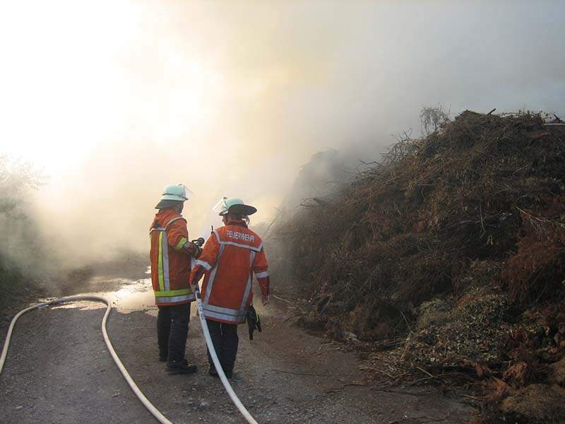 Ein Passant hatte die freiwillige Feuerwehr am Samstagabend informiert, dass es auf dem Häckselhof in Freiberg brennt.