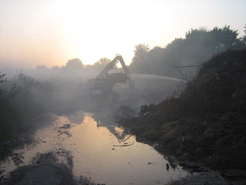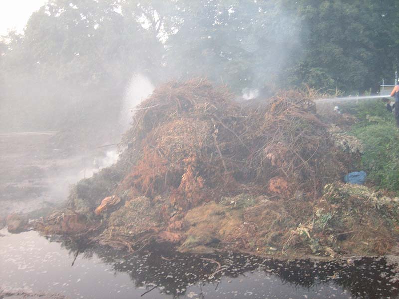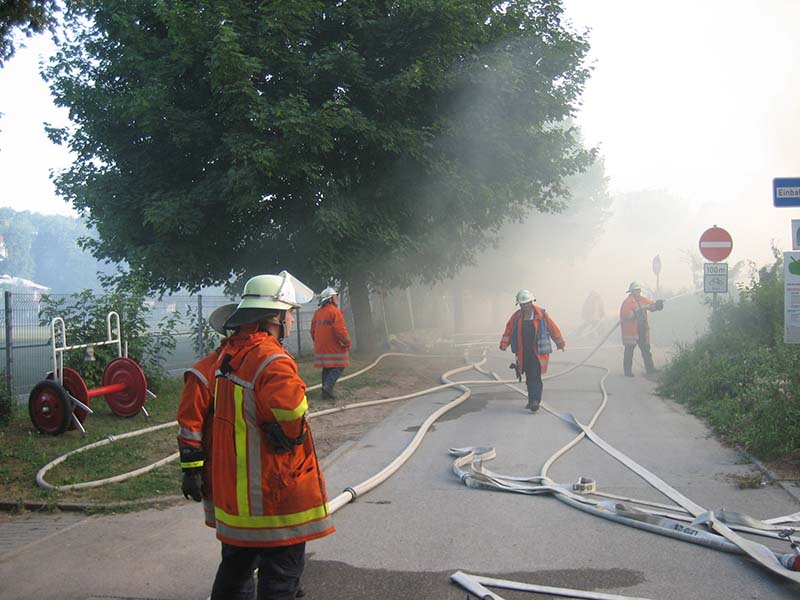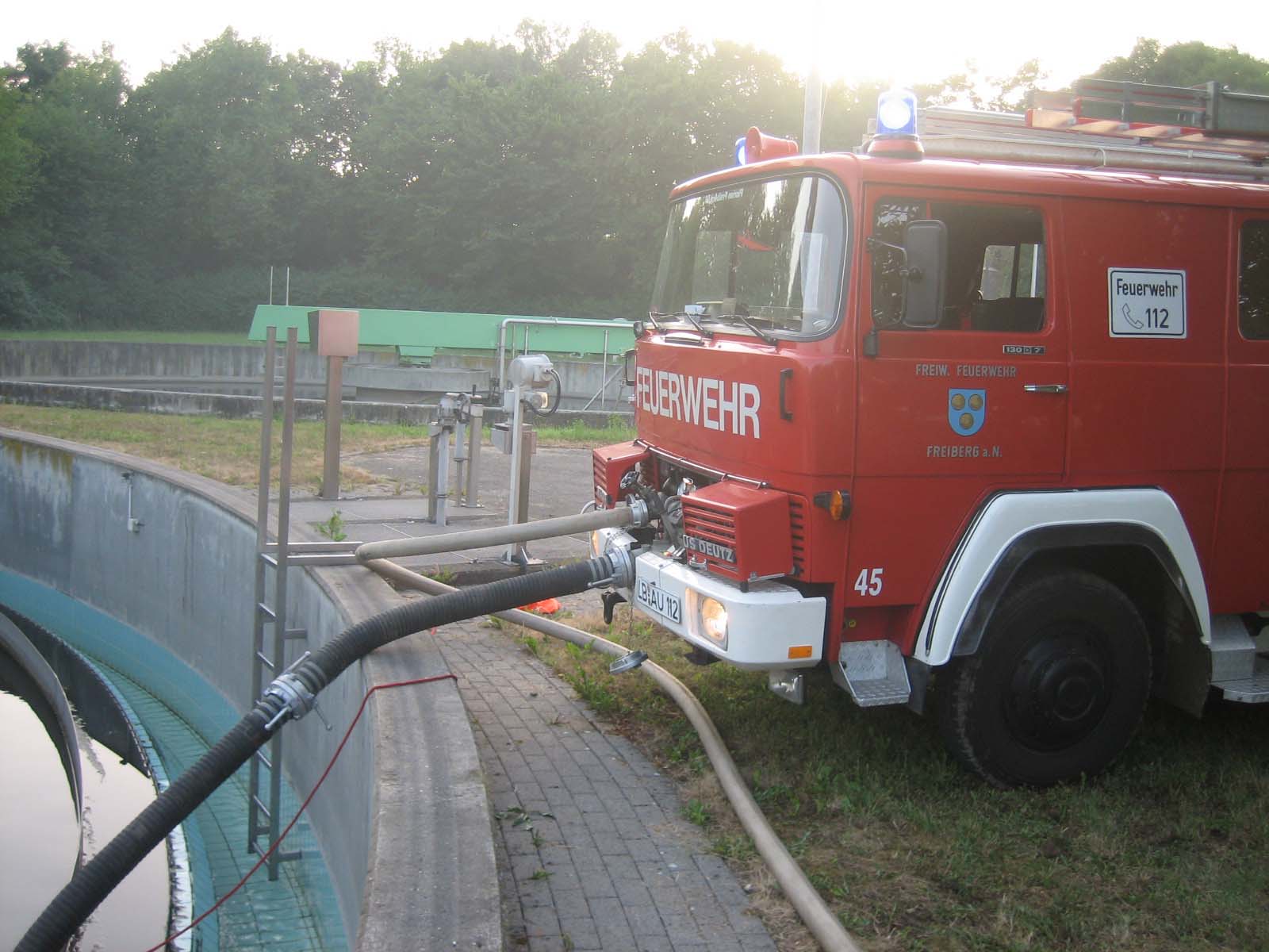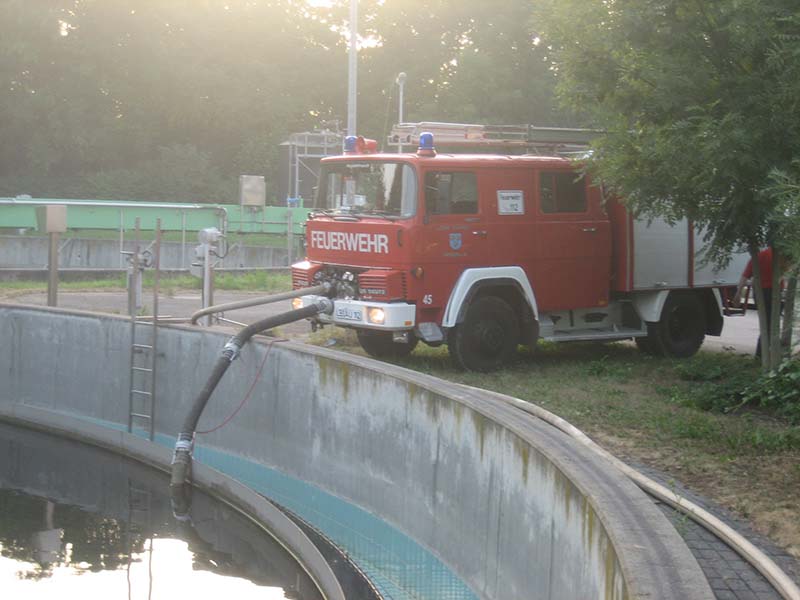 Für die Löscharbeiten wurde das Wasser aus dem Nachklärbecken der städtischen Kläranlage gesaugt, da die städtische Wasserversorung gewährleistet werden musste.