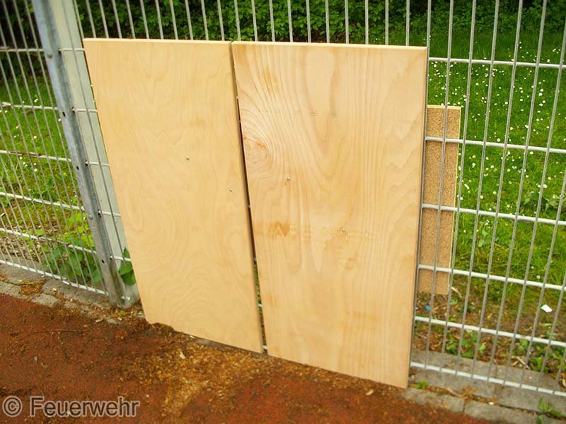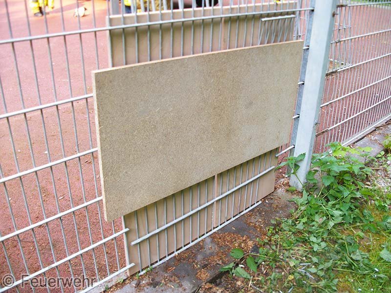 Zusätzlich wurde der Zaun mit einer Spanplatte gesichert.