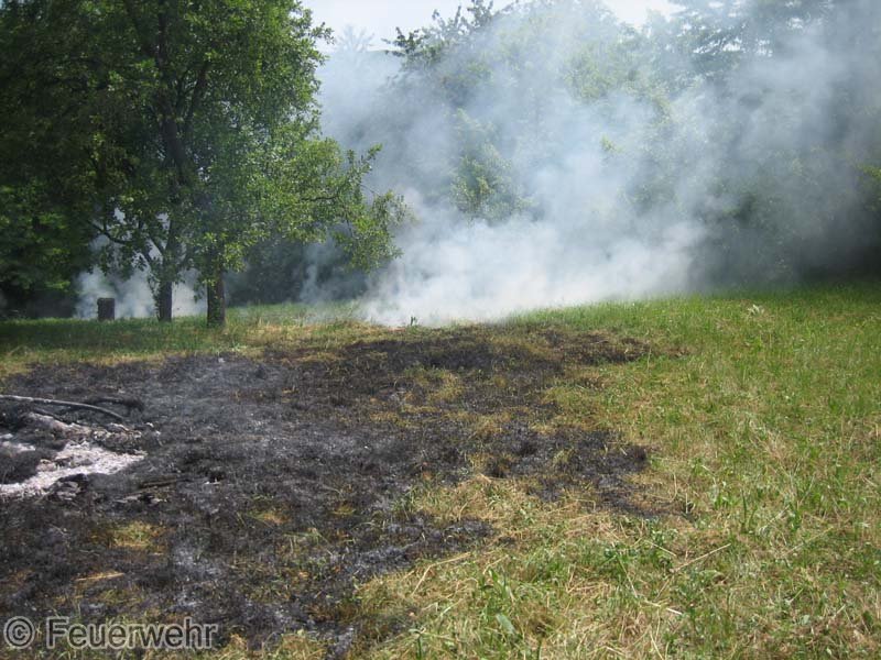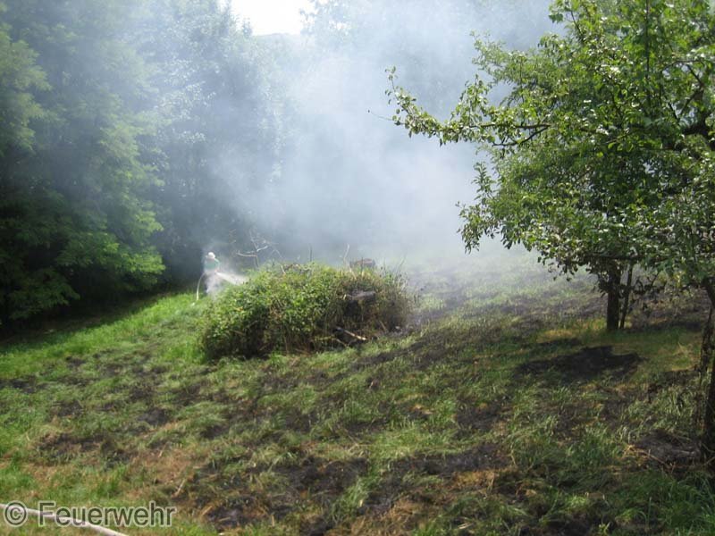 Die Feuerwehr fand beim Eintreffen eine ca. 300qm brennende Fläche vor, diese wurde dann mit 2 C-Rohren abgelöschte.