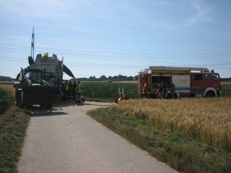 Am 04.07.2015 um 15:24 Uhr wurde die Feuerwehr Freiberg am Neckar zu einem Mähdrescherbrand auf ein Feld im “ Mittlerer Weg“ gerufen.