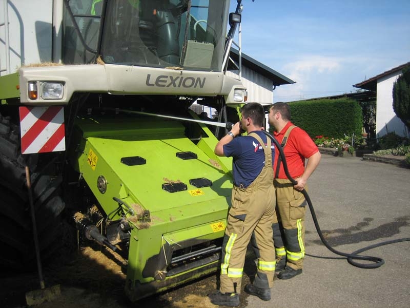 Dort wurde der Mähdrescher gereinigt und anschließend von der Feuerwehr mit Wasser geflutet und dem Besitzer übergeben.