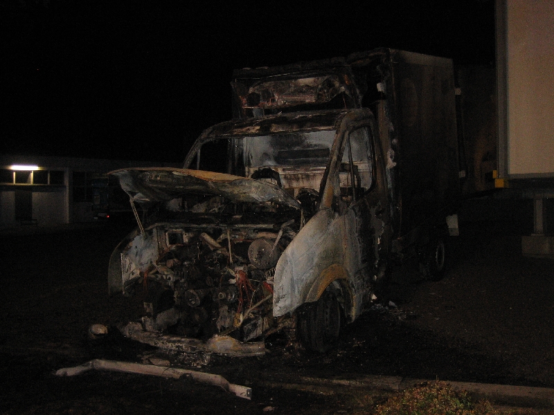 Am 28.12.2015, gegen 18:00 Uhr bemerkte ein Nachbar, dass gegenüber bei einer Firma in der Steinbeissstraße ein Rasenstück und ein dort abgestellter Kleintransporter bereits am Kühlergrill brannte. Sofort verständigter er über Notruf 112 die Leitstelle Ludwigsburg, die um 18:01 Uhr die große Schleife der Feuerwehr Freiberg mit Einsatzstichwort „B2 – Lkw Brand“ alarmiert. Als der Einsatzleitwagen an der Brandstelle eintraf, brannte der Kühltransporter bereits in voller Ausdehnung und andere Fahrzeug waren durch die Flammen gefährdet. Als Erstmaßnahme wurde deshalb der daneben stehende Transporter sofort mit einem Schaumlöscher gekühlt, um ihn bis weitere Maßnahmen eingeleitet werden konnten, bestmöglich abzuschirmen. Von den dann eintreffenden Löschfahrzeugen nahmen dann zwei Trupps unter Atemschutz die Brandbekämpfung auf. Insgesamt wurden zwei C-Rohre zur Brandbekämpfung und drei C-Rohre zur Riegelstellung an der Laderampe des Kühlraumes und zu dem abgestellten anderen Transporter in Einsatz gebracht. Einen weiteren Kühltransporter konnte die Feuerwehr noch aus der Gefahrenzone herausfahren. Nach Beendigung der Nachlöscharbeiten wurde die Einsatzstelle noch für die Kräfte der Polizei ausgeleuchtet. Nach Abschluss aller Arbeiten konnte die Einsatzstelle dem Firmeninhaber wieder übergeben werden.