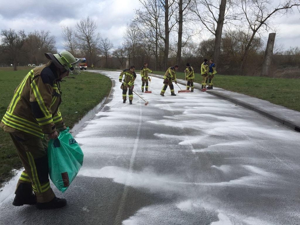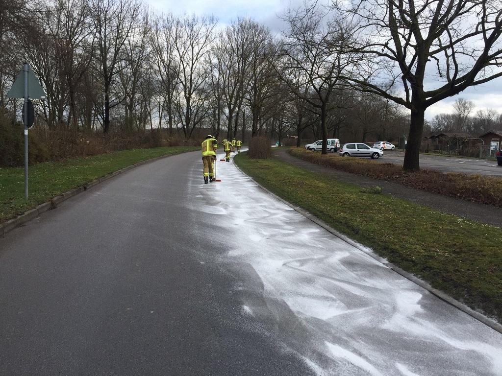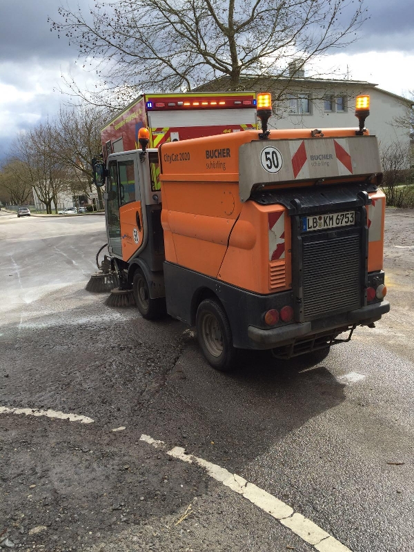 Am Vormittag des 06.03.2016 stellte eine Streife der Polizei eine Ölspur im Bereich der Tal- und Wernerstraße fest und informierte darauf die Integrierte Leitstelle Ludwigsburg (ILS). Von dort wurde um 11:27 Uhr zunächst die Kleine Schleife der Feuerwehr Freiberg alarmiert. Nachdem erster Kräfte an der Einsatzstelle eingetroffen waren, wurde wegen des Umfanges der Ölspur noch die Zugschleife der Feuerwehr nachalarmiert. In der Zwischenzeit wurde dann auch der Verursacher festgestellt. An einem Streufahrzeug war eine Hydraulikleitung undicht, der Fahrer bemerkte dies auch recht schnell und fuhr zum Bauhof zurück, die Verunreinigung auf der Straße war im Schneematsch aber zunächst nicht feststellbar. Das Öl am Fahrzeug wurde am Bauhof mit einem Hochdruckreiniger entfernt. Die Ölspur wurde von der Feuerwehr abgestreut, zusätzlich wurden Warnschilder aufgestellt. Bereits während des Einsatzes der Feuerwehr wurde der Bauhofleiter verständigt, der mit einer Kehrmaschine die Fahrbahn reinigen ließ.