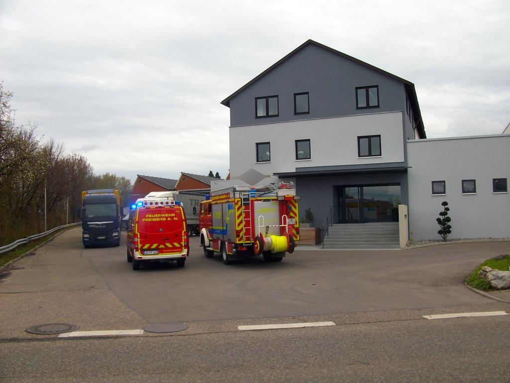 Die Feuerwehr Freiberg war mit drei Fahrzeugen (ELW, LF 16/12 und HLF 20/16) und 21 Feuerwehrkameraden im Einsatz. Vor der Feuerwehr Ludwigsburg waren zwei Feuerwehrmänner mit der Drehleiter (DLK 23-12) nach Freiberg ausgerückt. Vom DRK Ludwigsburg war ein Rettungswagen mit zwei Mann und vom Polizeirevier Marbach ein Streifenwagen mit zwei Beamten vor Ort.
