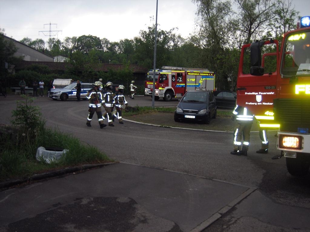 Insgesamt war die Feuerwehr Freiberg mit 33 Mann und vier Fahrzeugen ( ELW 1, LF 16/12, HLF 20/16 und LF 20-L) in die Marbacher Straße ausgerückt. Die Feuerwehr Ludwigsburg war mit der Drehleiter DLK 23-12 und zwei Mann an der Einsatzstelle. Vom Polizeirevier Marbach waren zwei Streifenwagen mit insgesamt vier Beamten vor Ort.