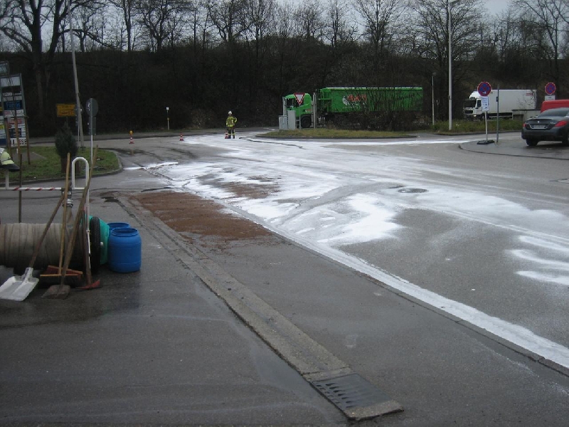 Zu einer Ölspur in der Steinheimer Straße wurde die Kleine Schleife 2 der Feuerwehr Freiberg am 09.03.2017, um 13:54 Uhr alarmiert. An einem Müllfahrzeug war ein Hydraulikschlauch geplatzt und so liefen ca. 60 – 70 Liter Hydrauliköl aus und verteilten sich auf der Fahrbahn. Die Einsatzkräfte setzen zwei Gullidichtkissen ein, um die Kanalschächte abzudichten und brachten anschließend Ölbinder auf, um das Öl zu binden. Eine Kehrmaschine reinigte anschließend die Fahrbahn.