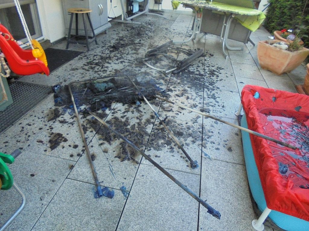 Zu einem gemeldeten Wohnhausbrand in der Masurenstraße wurde die große Schleife der Feuerwehr Freiberg am 25.05.2017, um 19:01 Uhr alarmiert. Vor Ort stellte die Einsatzleitung fest, dass auf einer Terrasse ein Wäscheständer und eine Markise in Brand geraten waren. Die Terrasse war nicht direkt zugänglich, jedoch war der Brand von Nachbarn bereits abgelöscht worden. Die betreffende Wohnung im Erdgeschoss war verschlossen, die Bewohner waren nicht zu Hause. Zu Nachlöscharbeiten mussten die Einsatzkräfte dann den Weg über einen Garten in der Egerländerstraße nehmen. Auf der Terrasse führte dann ein Trupp unter Atemschutz die Nachlöscharbeiten durch. Ein weiterer Trupp war auf der Gebäudevorderseite in Bereitstellung, bis geklärt war, dass sich in der Wohnung keine Personen aufhielten oder die Wohnung vom Brand betroffen war. Da sich dies nicht bestätigte, konnte der Rettungsdienst und die von der Feuerwehr Ludwigsburg angerückte Drehleiter aus dem Einsatz herausgelöst werden.