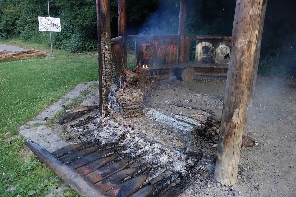 Am 01.06.2017 gegen 5:30 Uhr bemerkte ein LKW Fahrer Flammen an der Wetterschutzhütte östlich des Chinahauses. Er verständigte über den Notruf 112 die Integrierte Leitstelle in Ludwigsburg. Um 5:33 Uhr wurde die Große Schleife der Feuerwehr Freiberg alarmiert. Die Einsatzkräfte der Feuerwehr fuhren die Brandstelle über den Fußweg beim Chinahaus und über die Gründelbachstraße an. Die Mannschaft des ersten Löschfahrzeuges konnte den Brand dann aber schnell mit einem C-Rohr löschen. Anschließend wurden die Teile der Hütte mit der Wärmebildkamera nachkontrolliert.