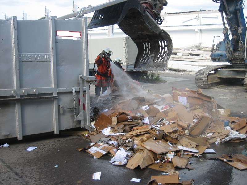 Die Papierpresse wurde komplett ausgeräumt und mit einem C-Rohr abgelöscht, damit kein weiteres Entzünden mehr möglich war.
