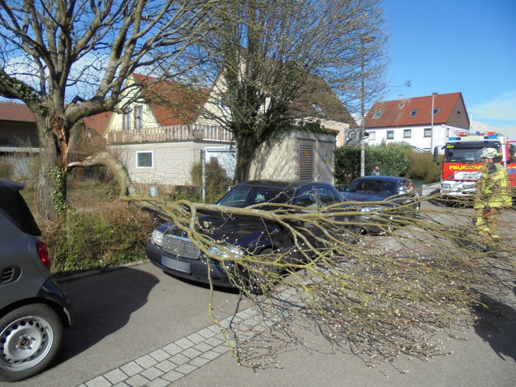 Die Feuerwehr Freiberg war bei diesem Sturmschaden mit den Fahrzeugen KdoW, HLF 20/16 und elf Einsatzkräften ausgerückt. Die Polizei vom Revier in Marbach war mit einem Streifenwagen und zwei Beamten vor Ort.