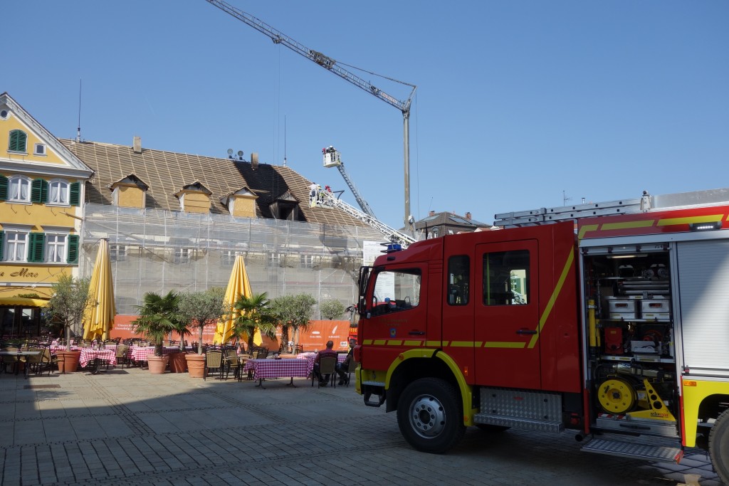 Am 19.04.2018, um 15:05 Uhr wurde die Führungsgruppe der Feuerwehr Freiberg zur Unterstützung der Feuerwehr Ludwigsburg zu einem Dachstuhlbrand am Ludwigsburger Marktplatz alarmiert. Dort brannte der Dachbereich eines Hauses, das zur Zeit umgebaut wird.