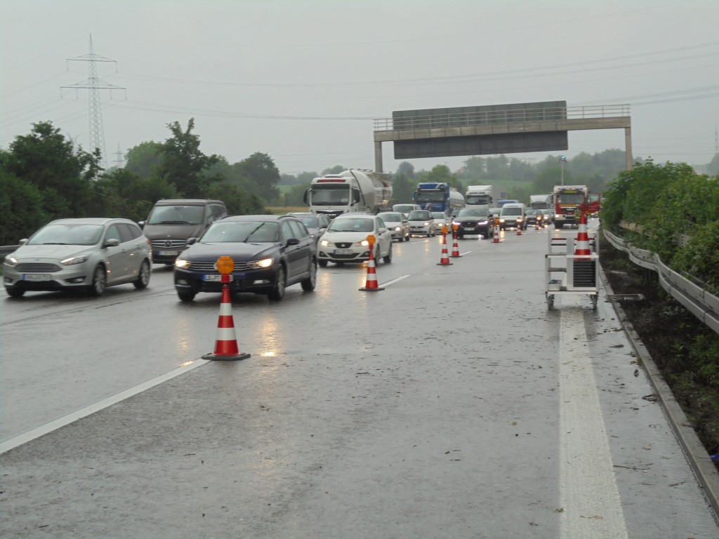 Am 12.06.2018 wurde um 13:49 Uhr die Zugschleife 1 und die Kleine Schleife 2 der Feuerwehr Freiberg alarmiert, nachdem von der Autobahn A81 ein Verkehrsunfall mit unklarer Lage gemeldet worden war. An der Einsatzstelle, auf dem Streckenabschnitt zwischen der Anschlussstelle Pleidelsheim und Ludwigsburg Nord, war ein Pkw im Starkregen ins Schleudern geraten und gegen die Mittelleitplanke geprallt. Der Fahrer war verletzt und vom Rettungsdienst in ein Krankenhaus gebracht. Die Feuerwehren Pleidelheim und Freiberg übernahmen die Verkehrsabsicherung der Unfallstelle und die Sperrung des linken Fahrstreifens in Fahrtrichtung Stuttgart.