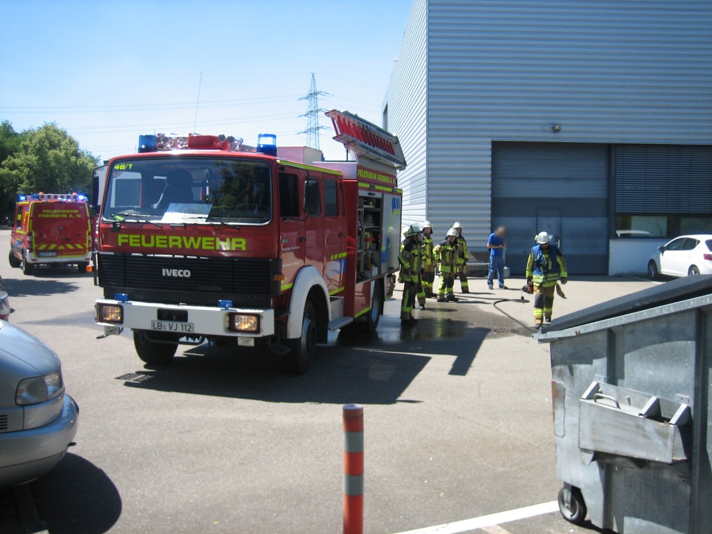 Die Zugschleife 1 der Feuerwehr Freiberg wurde am 20.06.2018, um 14:03 Uhr alarmiert, nachdem Mitarbeiter eines Betriebes in der Planckstraße einen Brand in einem Container meldeten. Die Löscharbeiten an dem rauchenden Container wurden vom Angriffstrupp unter Atemschutz mit dem Schnellangriff vorgenommen. Zur weiteren Kontrolle des Containers kam auch eine Wärmebildkamera zum Einsatz. Nach Abschluss der Löscharbeiten wurde die Einsatzstelle wieder an einen Vertreter des Betriebes übergeben.