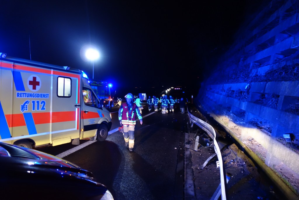 Die Feuerwehr Freiberg war mit 21 Einsatzkräften und den Fahrzeugen ELW 1, HLF 20/16, LF 20-L, sowie MZA an der Unfallstelle. Die Feuerwehr Ludwigsburg war mit dem GW Umwelt und Technik, sowie drei Mann ausgerückt. Der ASB Ludwigsburg war mit einem Notarztzubringer, zwei Rettungswagen und sechs Rettungskräften, das DRK Bietigheim-Bissingen mit einem Rettungswagen und zwei Rettungskräften vor Ort. Die Verkehrspolizei Stuttgart-Vaihingen hatte drei Streifenwagen mit insgesamt sechs Beamten im Einsatz. Außerdem waren Kräfte und Fahrzeuge der Autobahnmeisterei Ludwigsburg eingesetzt.