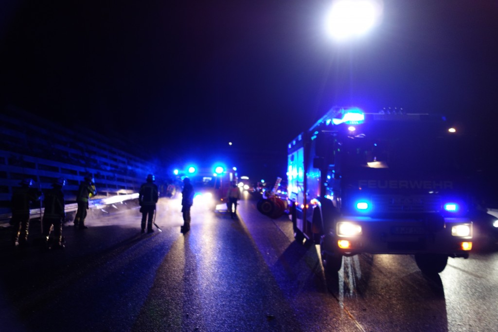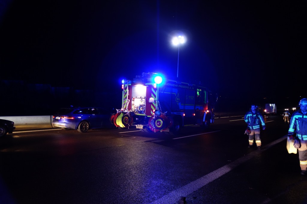 Zum letzten Einsatz im Jahr 2018 wurde die Zugschleife 1 der Feuerwehr Freiberg am 31.12.2018, um 19:36 Uhr alarmiert. Gemeldet war von der Autobahn A 81, Fahrtrichtung Heilbronn, zwischen den Anschlussstellen Ludwigsburg Nord und Pleidelsheim, ein Verkehrsunfall mit unklarer Lage. An der Einsatzstelle angekommen, stellten die Kräfte der Feuerwehren Freiberg und Ludwigsburg fest, dass vier Fahrzeuge in den Unfall verwickelt waren. Davon hatte ein Kleintransporter mehrere Gebinde mit flüssigem Sauerstoff geladen. Die Fahrzeuginsassen konnten ohne Hilfe ihre Fahrzeuge verlassen und waren beim Eintreffen der Feuerwehr bereits ausstiegen. Die Autobahn in Fahrtrichtung Heilbronn wurde voll gesperrt. Die Autobahnmeisterei Ludwigsburg nahm auslaufende Betriebsstoffe auf und reinigte die Fahrbahn. Für die Unfallaufnahme durch die Verkehrspolizei wurde die Fahrbahn von der Feuerwehr ausgeleuchtet. Die Absperrmaßnahmen wurden anschließend von der Autobahnmeisterei fortgeführt und die Einsatzstelle wurde an die Verkehrspolizei Stuttgart Vaihingen übergeben.